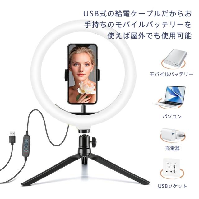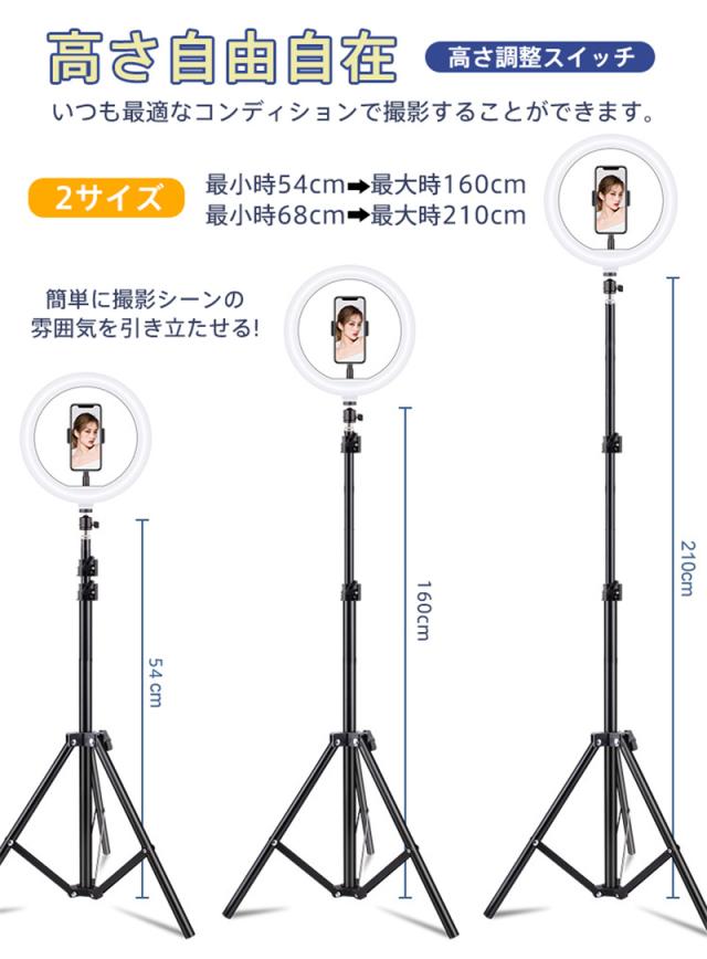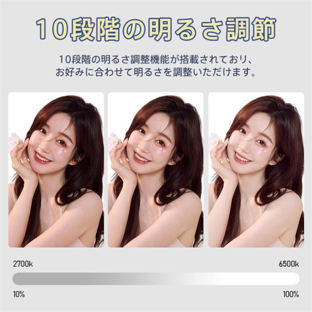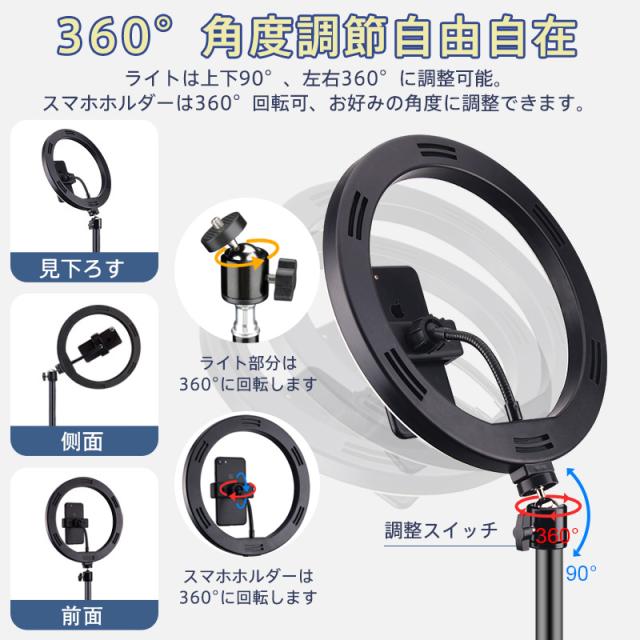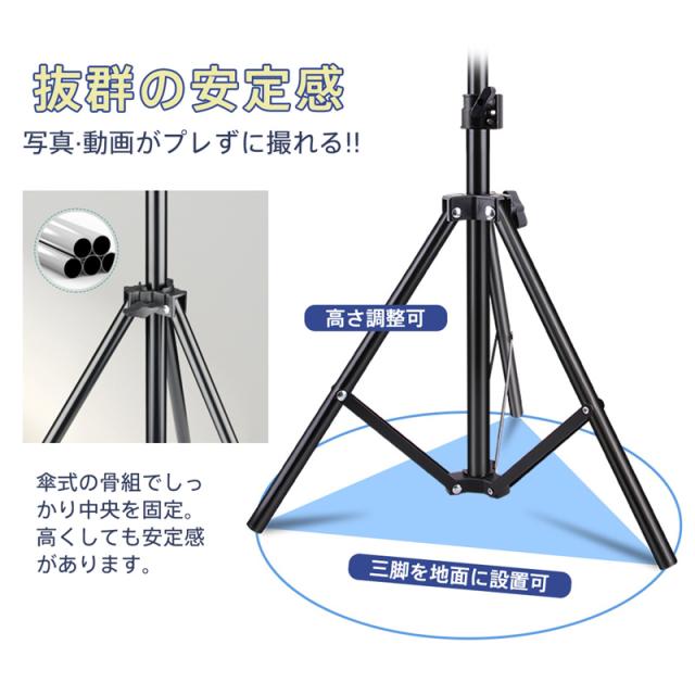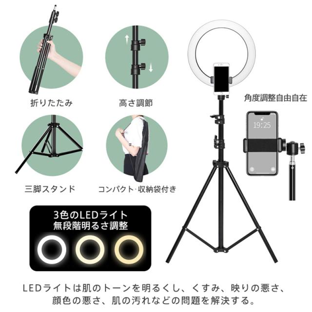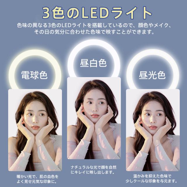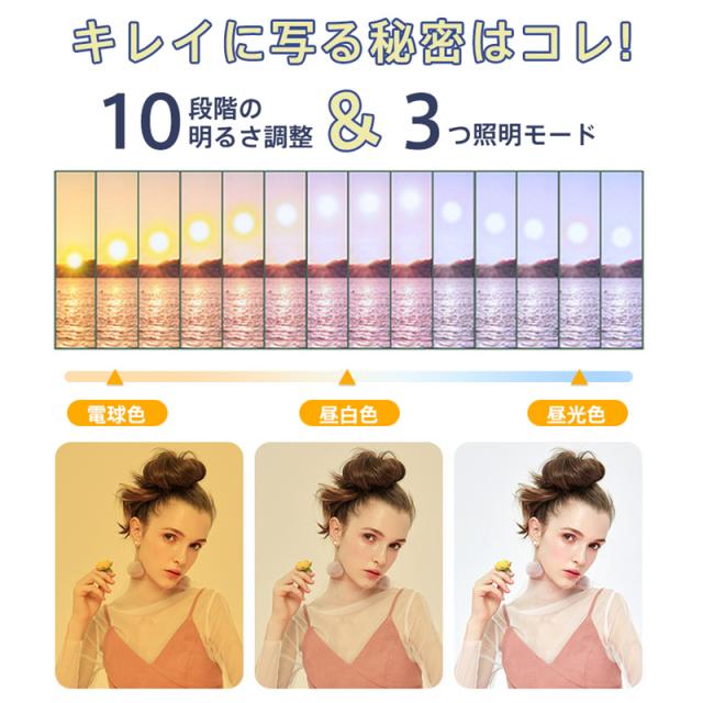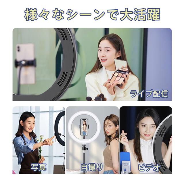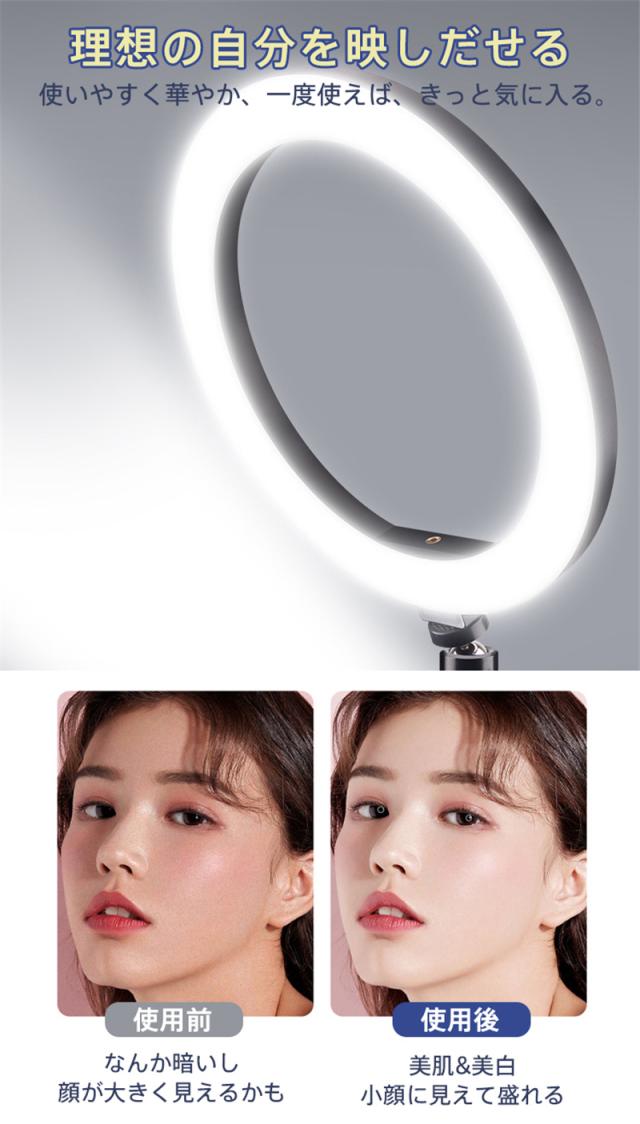 10インチリング状のLEDライトは柔らかく照らすことで、人肌の質感や顔の凹凸を自然的に美顔しながら