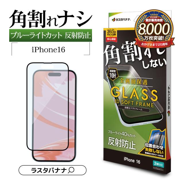 iPhone16 iPhone15 ガラスフィルム 全面保護 ブルーライトカット アンチグレア 反射防止 角割れしない 0.25mm SY4294IP461 ラスタバナナ