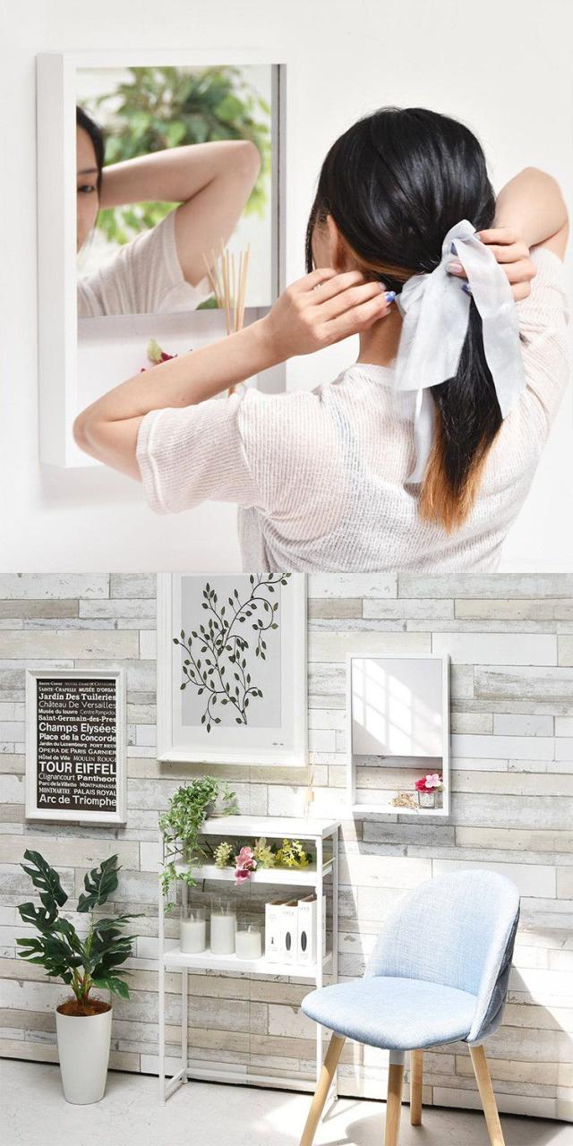 BF DECOシリーズの壁掛けミラー。フレームをホワイトで統一したBF DECOシリーズは、インテリアアイテムとしてもお部屋を彩ります。ちょっとした収納スペースがありますので、ハンドボトルや香水、鍵などを置くのに便利です。小物とも調和がとれやすいシンプルでおしゃれなデザインになっています。