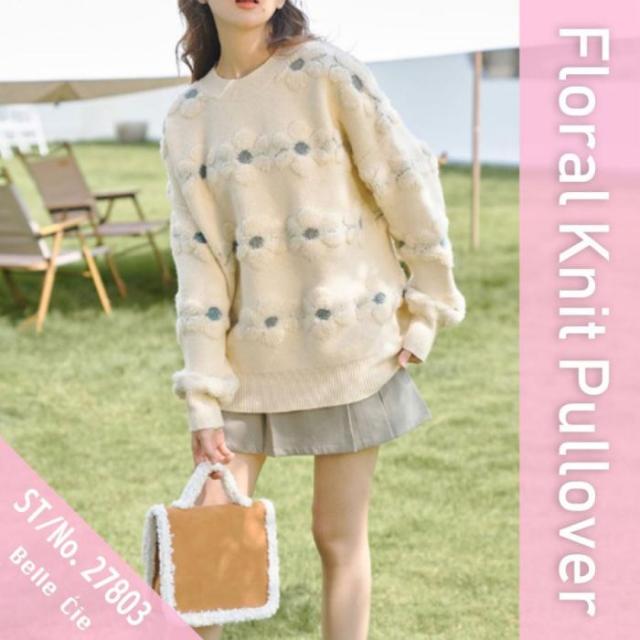 【花柄ニットプルオーバー】