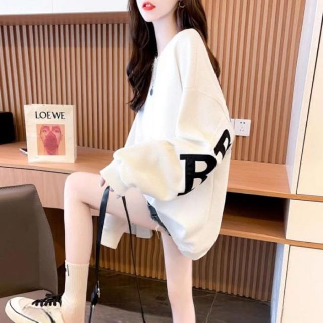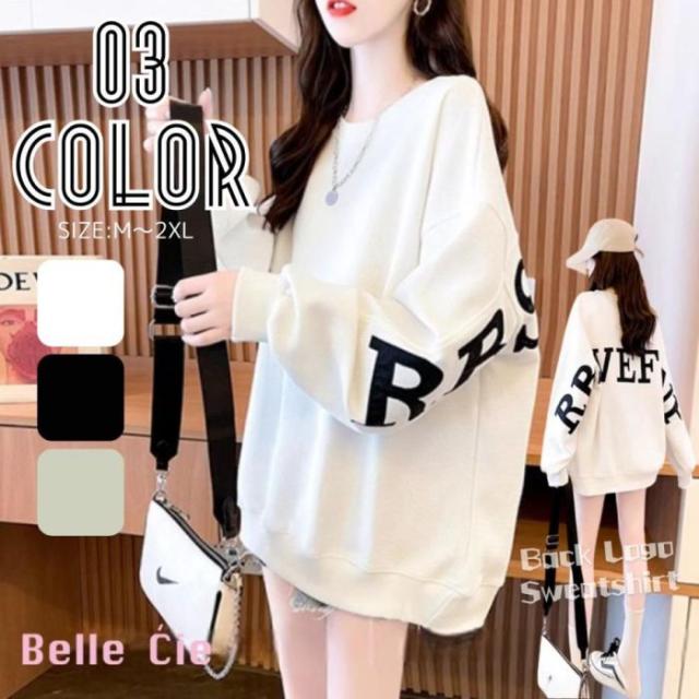 トレーナー スウェット トップス 長袖 ビッグシルエット ロゴ 秋 レディース 韓国ファッション バックロゴ かっこいい ギャル ドロップショルダー