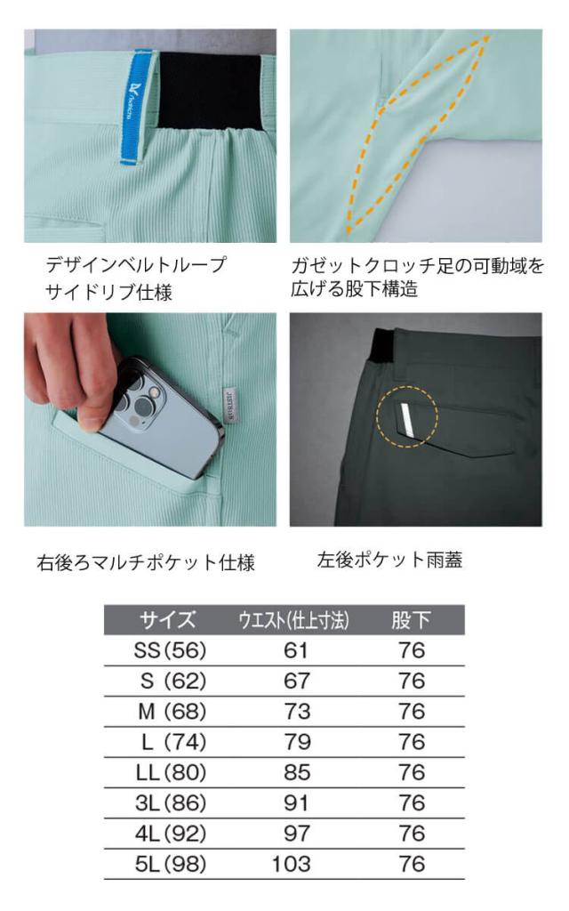作業服 アサヒチョウ asahicho 旭蝶 レディースパンツ E8707 春夏 エコマーク認定商品 帯電防止 SS〜LLサイズ