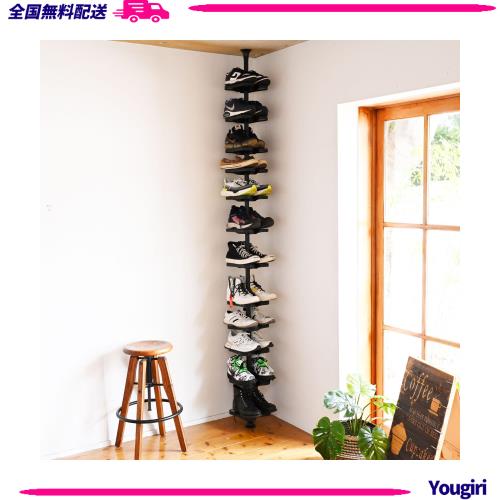 [山善] 突っ張り ラック シューズラック 12段 スリム 玄関 靴 収納 省スペース 実用新案取得済 ワンタッチ突っ張り 幅22×奥行23×高さ19