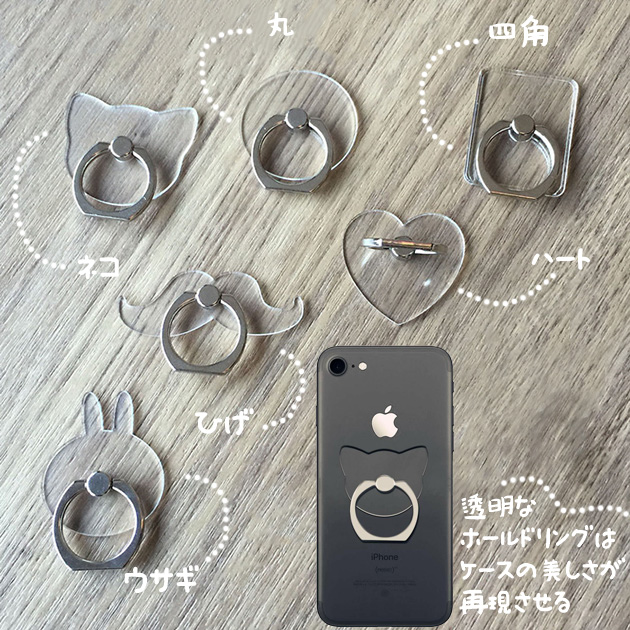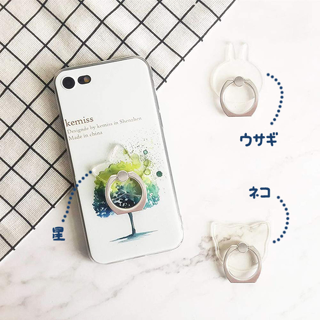 スマホリング 透明 バンカーリング おしゃれ スマホ リング 薄型 携帯リング iPhone リング キャラクター 猫 クリア アクセサリー