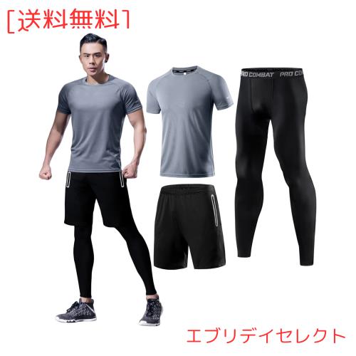 メンズ コンプレッションウェア 3点セット 上下セット 吸汗 速乾 スポーツウェア 通気 防臭 トレーニングウェア ランニングウェア 半袖シ