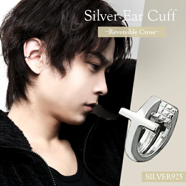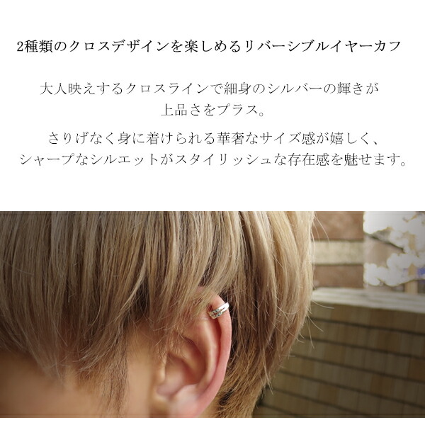 リバーシブル クロス シルバー イヤーカフ 小さめ 1P 片耳用 シルバー925 シンプル スタンダード イヤーカフス ノンホールピアス イヤークリップ