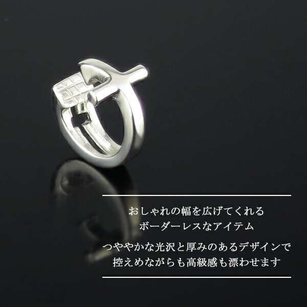 リバーシブル クロス 透かし シンプル 小さめ シルバーイヤーカフ (1P/片耳用)