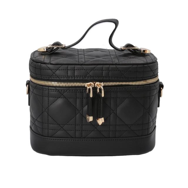 【コーデに可愛いアクセントをプラス】おしゃれに持ち歩けるキルティングデザイン♪「ALTROSE エレブ3WAYBAG」。【コンパクトなバニティバッグ】ちょこんと持てるフォルムがキュート!身軽にお出かけできて、こなれ感もアップ。【色んなコーデに素敵にマッチ】ゴールド金具を組み合わせ、大人な印象に。フェミニンやカジュアルスタイルとも相性抜群。【お好みに合わせてスタイルチェンジ】ショルダーは2段階調節でき、肩掛けも斜め掛けもOK。取り外して手持ちも自在な3WAY☆【見やすくぐるっと180度オープン】左右どちらからも大きく開くファスナー式。取り出しやすく、閉じれば中身が飛び出す心配なし。【マストアイテムがひとまとめ】ミニ財布やリップなどのコスメ、スマホなどをIN。荷物を入れていない状態でも自立◎【サクッと取り出せて迷子知らず】内側に2つのポケットを配置。細々した物も、バッグの中で探す手間が不要。【底面の擦れを軽減して長持ち】底面四隅には、傷や汚れが付きにくい底鋲を装備。直置きも安心。【お気に入りを選べるカラー】シックなブラックや、柔らかなカラーをラインナップ。なりたいイメージに合わせてチョイス!【ポケット仕様】内側:オープンポケット×2