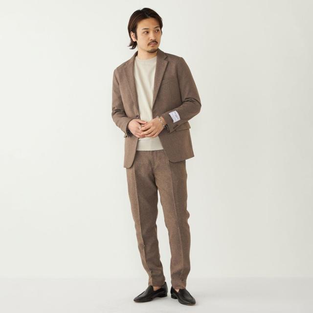 同素材のジャケットとのセットアップでの着用もおすすめです。