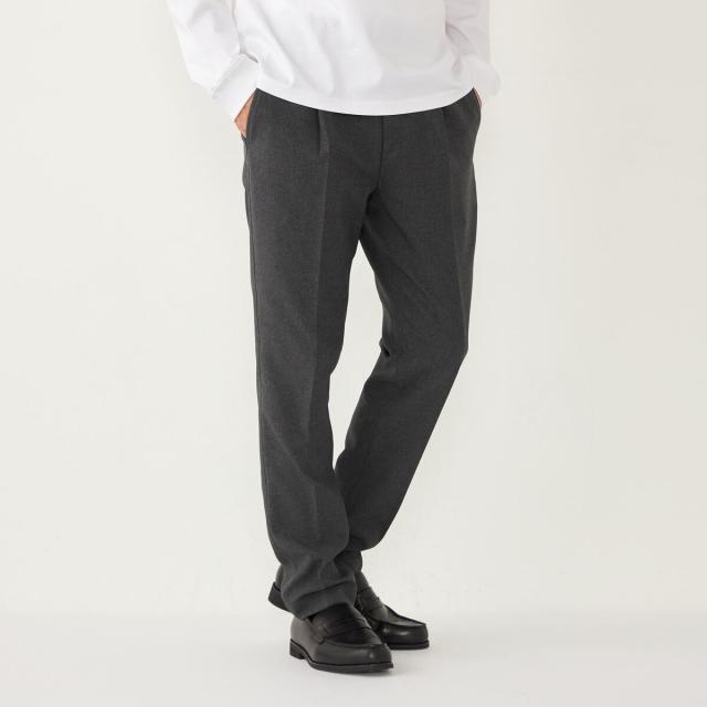 SHIPS Colorsでご好評の、様々な機能を兼ね備えたウール調ポリエステル素材のイージースラックスパンツ。