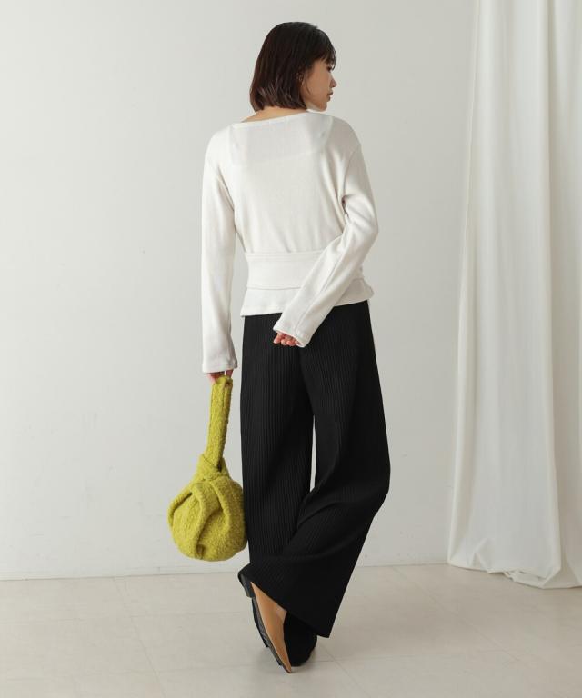 マットな色合いが初秋に上品なムードを添えるプリーツパンツが登場。伸縮性のあるさらっとした生地感と ウエストの総ゴムでリラクシーな着心地を叶えます。インスタイルでも着映えする紐リボンがアクセントになります。