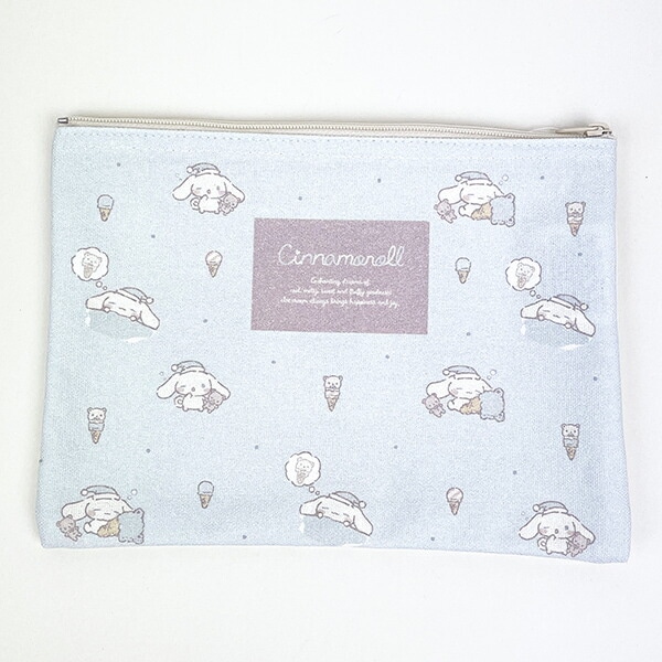 シナモロールが持っているくまアイスとおねんねスタイルのシナモロールのデザインがかわいいフラットポーチです。表裏でデザインが異なるのでいろんなシナモンがいてとてもキュート♪ファスナー付きでコスメや小物入れにぴったりです☆