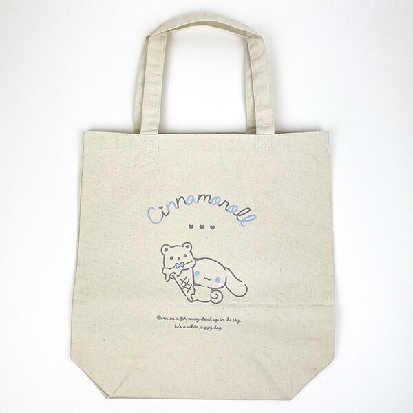 シナモロールが持っているくまアイスのデザインがかわいいトートバッグです。収納力も十分、しっかりした生地で使い勝手も良く普段使いにもおすすめです☆