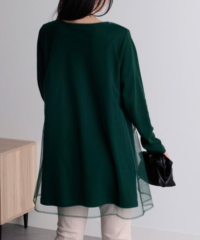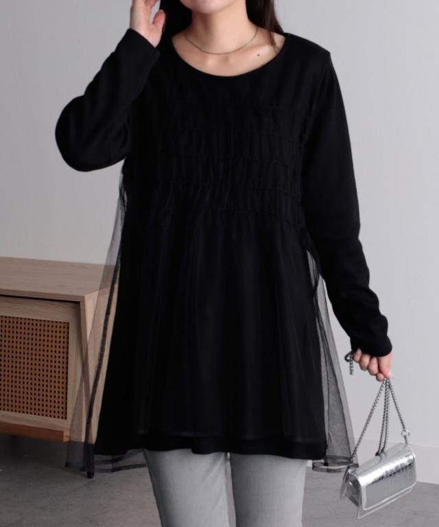 【裏起毛】チュール重ねチュニック