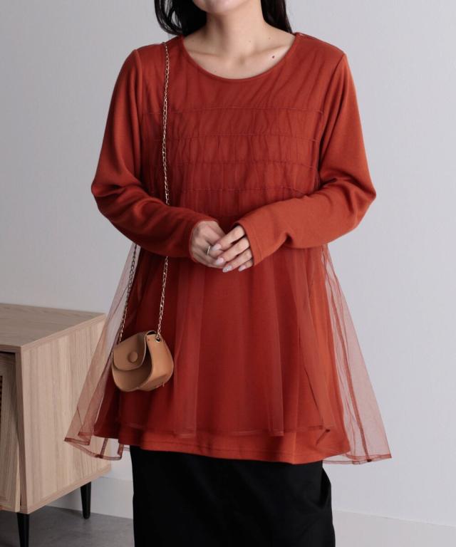 おしゃれもあったかも叶うチュールデザインのチュニックでちょっとしたお出かけもこなれ度アップ!【商品】