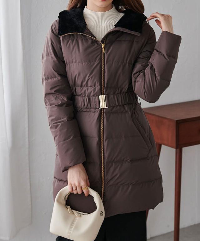 ファー使い&ゴールドジップ使いがエレガントな高見えファーフードダウンコート♪【商品】