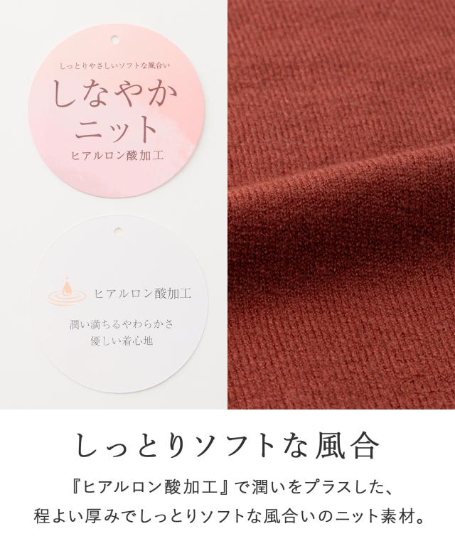 『ヒアルロン酸加工』で潤いをプラスした、程よい厚みでしっとりソフトな風合いのニット素材。