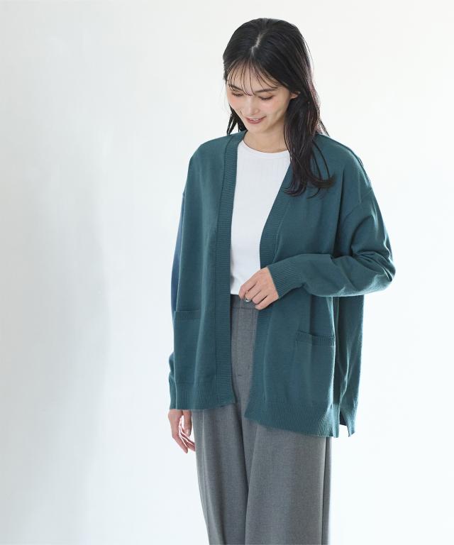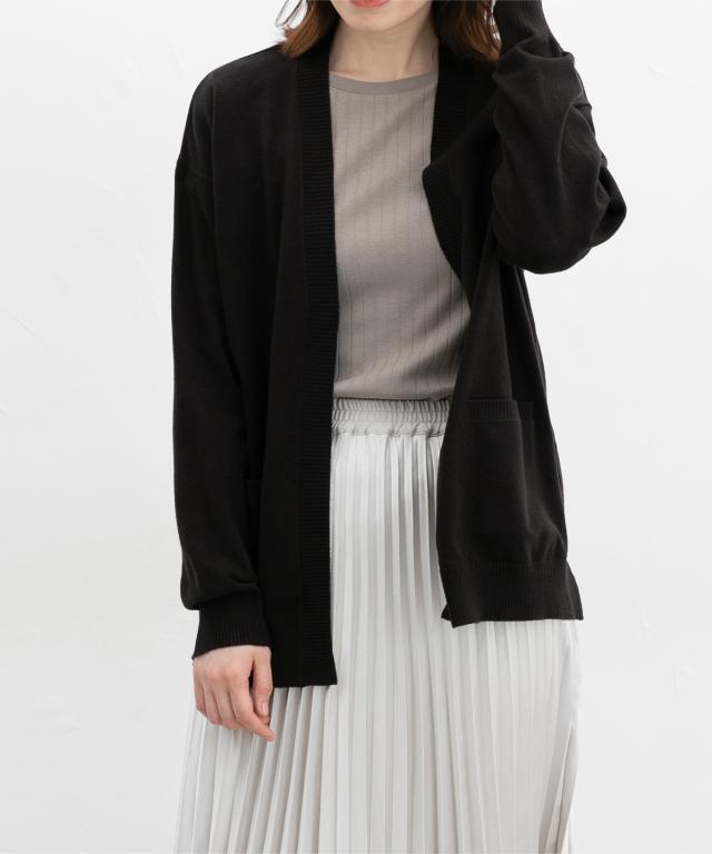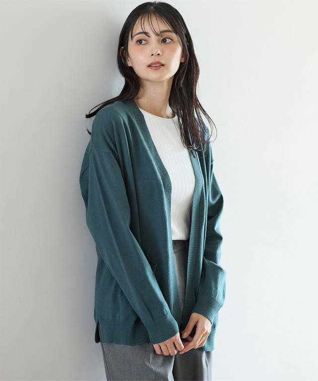 手軽に羽織れるボタンレスのシンプルデザイン。