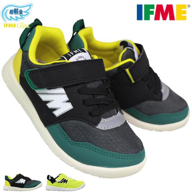 イフミー 20-4810 軽量ソールスニーカー ブラック グリーン 15cm〜19cm マジックテープ ベルクロ 面ファスナー イフミーライト IFME Light 丸紅フットウエア イフミー204810