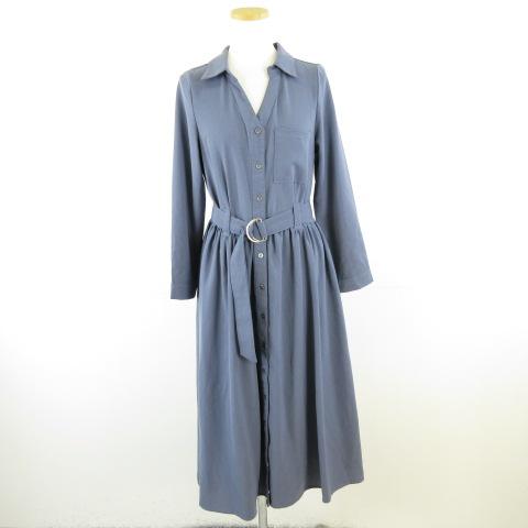 【中古】アールピーエス r.p.s シャツワンピース ひざ丈 長袖 青 M *A136 レディース