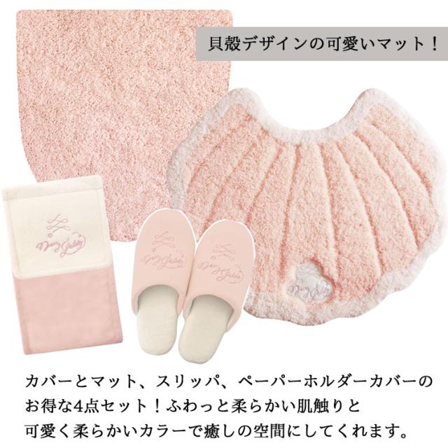 トイレマット セット トイレカバー 4点セット トイレカバーセット オシャレ トイレマットセット かわいい トイレ スリッパ セット ペーパーホルダー おしゃれ トイレスリッパ ピンク 白 ホワイト グレー シェル 貝がら ふわふわ 無地 可愛い 洗える 洗濯OK 北欧 丸形 四角