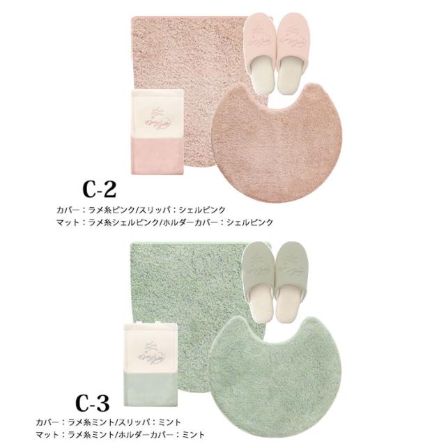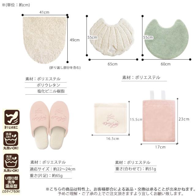 ・マット、スリッパ、フタカバー、ペーパーホルダーカバーの4点セット!