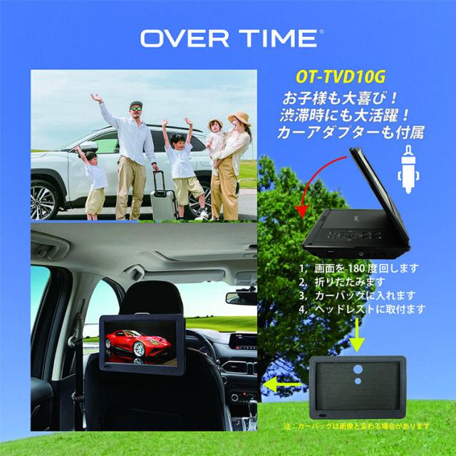 ポータブルDVDプレイヤー ポータブルテレビ 10.1インチ バッテリー内蔵 フルセグDVDプレイヤー 軽量 多機能 ワンセグ フルセグ OT-TVD10G OVER TIME【送料無料】