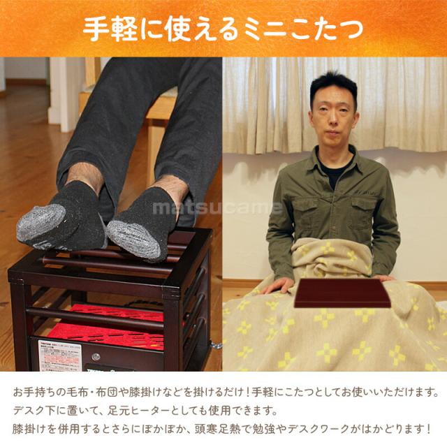 - こたつをしていたのですがチワワよく毛が抜けるしこたつ布団、掃除機の度に面倒だったのでコタツをやめましたが、ホットカーペット、ガスファンヒーターでは足元が寒いのでこれだったら邪魔にならないと思い買って良かったです!(´▽` 便利でオススメです(((o(*゚▽゚*)o)))