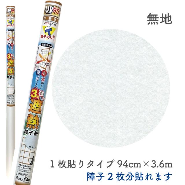 障子紙 SOJ938 遮熱障子紙 3倍強い 無地 障子2枚分 94cm×3.6m