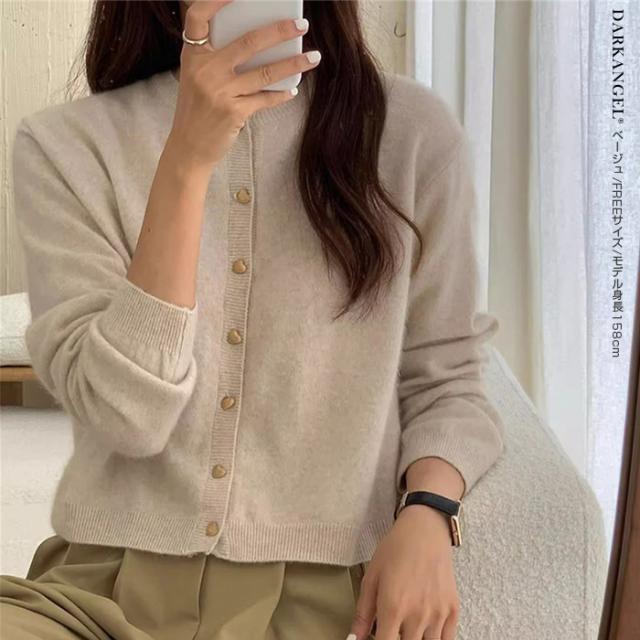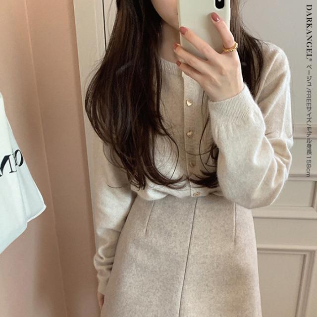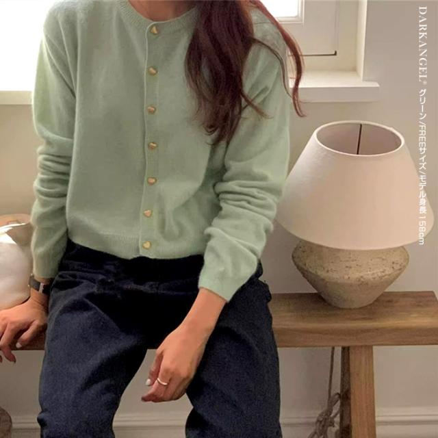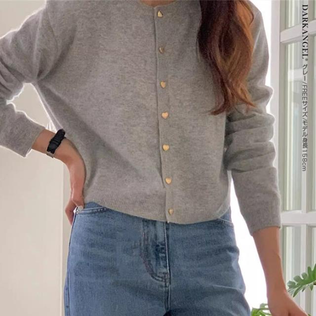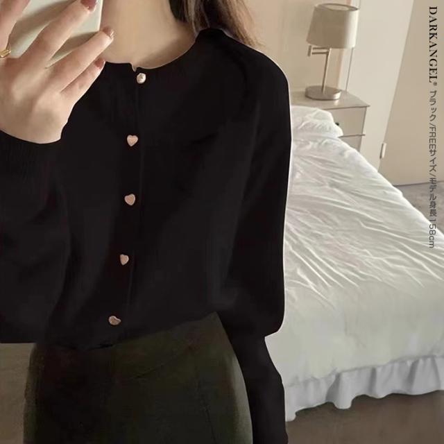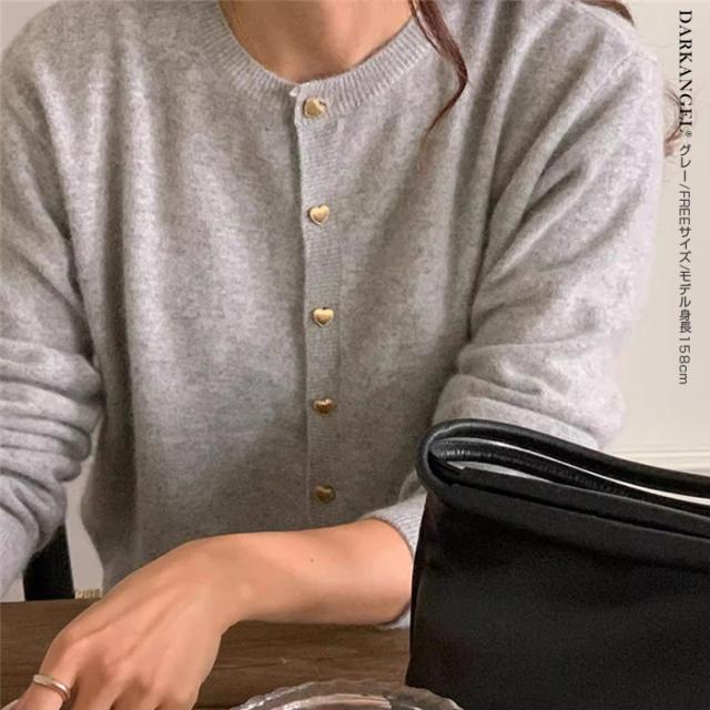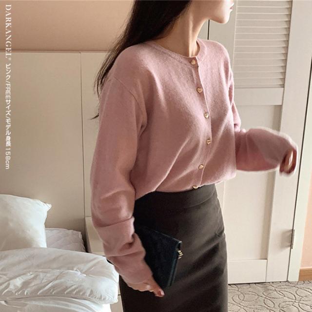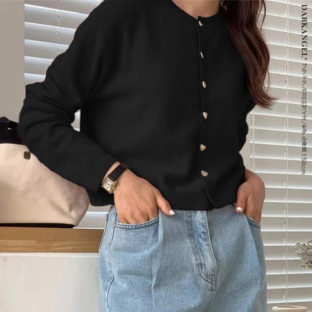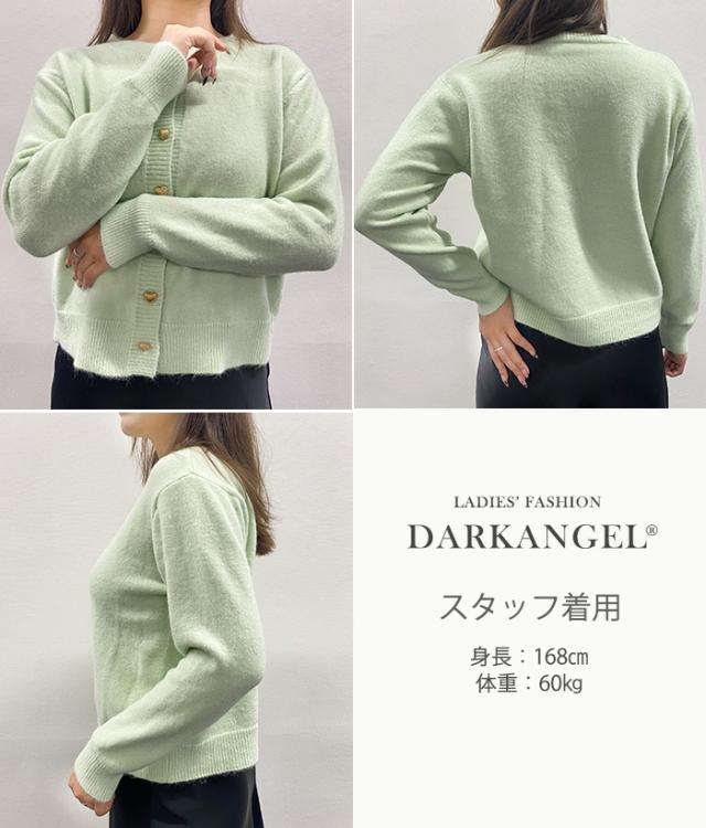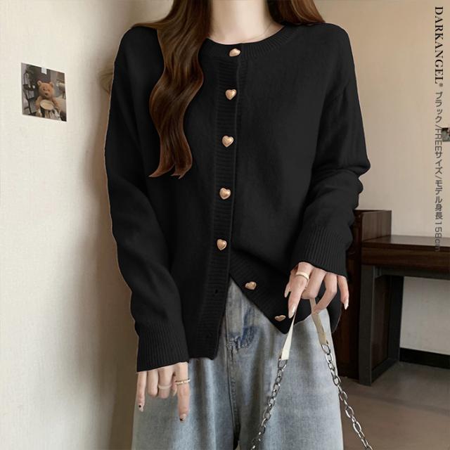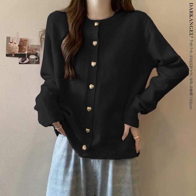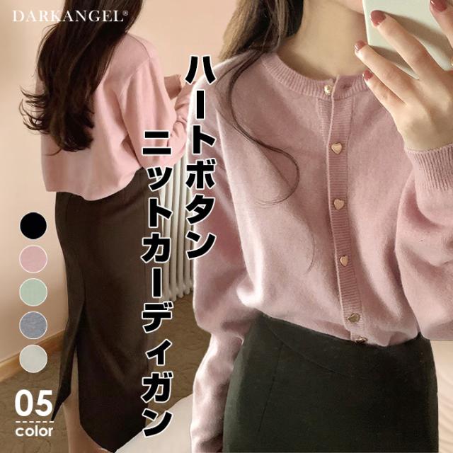 33%OFFクーポン!トップス カーディガン ジャケット レディース 長袖 ハートボタン ニットカーディガン ハート ボタン ニット ママ服 春 秋 冬 【ハートボタンニットカーディガン】 ダークエンジェル 春新作 ●即納●