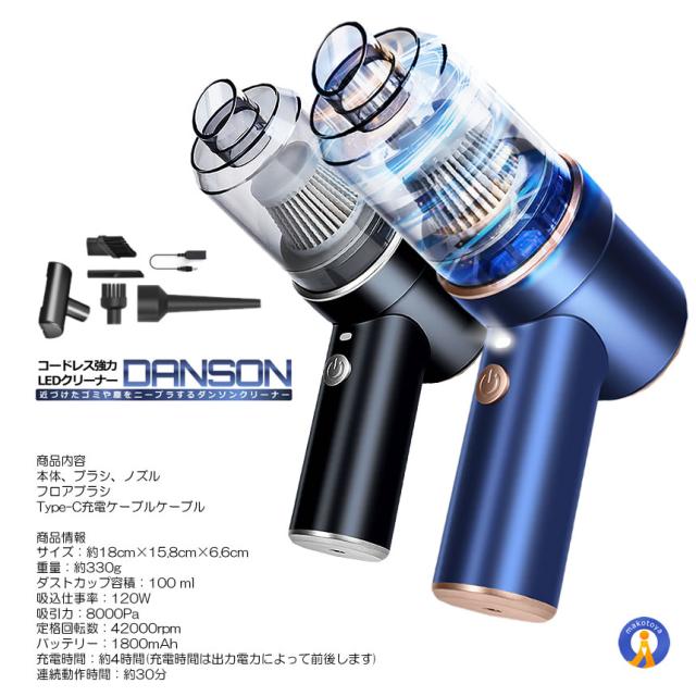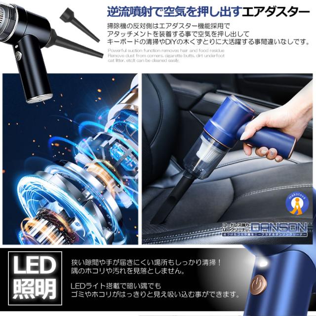 2個セット ハンディクリーナー 車載掃除機 8000pa 強吸引 コードレス 掃除機 USB充電式 LED 電動エアーポンプ GODSOJI s-kk2403-40a