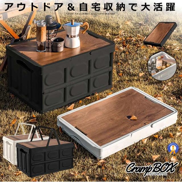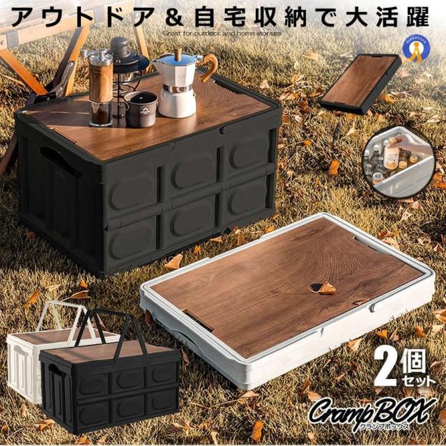 2個セット クランプテーブル 収納BOX 折り畳み キャンプ 30L コンテナボックス テーブル ウッド 側面開閉可能 アウトドア 車 アウトドア CRANPTABLE s-kk2303-15a