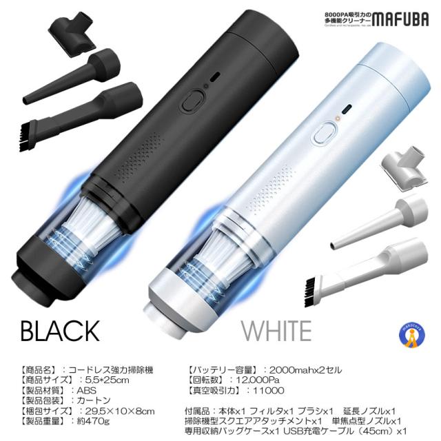 2個セット ハンディクリーナー 車載掃除機 コードレス ハンディ掃除機 12000Pa 吸引力 強力 カークリーナー 12000SOJI s-kk2404-32a