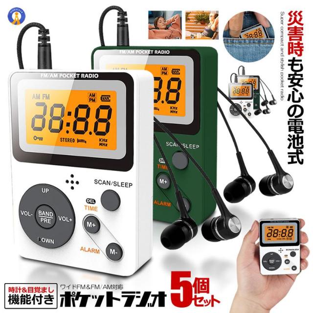 予約 5個セット ポータブル ワイドFM FM AM 対応 電池式 時計 目覚まし時計 ミニラジオ 小型ラジオ 携帯ラジオ 通勤ラジオ LCD 液晶 画面 ディスプレー BOURADIO s-kk2401-33a