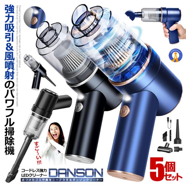 5個セット ハンディクリーナー 車載掃除機 8000pa 強吸引 コードレス 掃除機 USB充電式 LED 電動エアーポンプ GODSOJI s-kk2403-40a