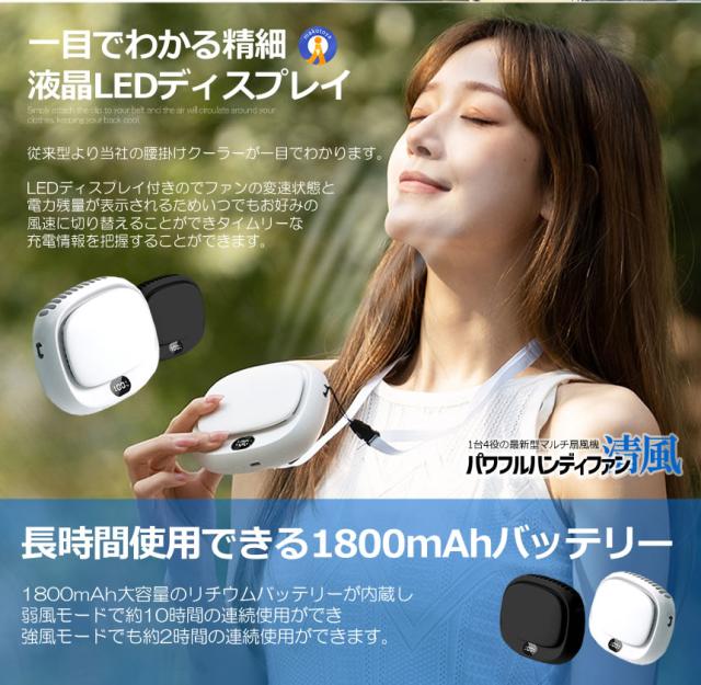 2個セット 腰掛け扇風機 ベルトファン ハンディファン LED残量表示 大容量 クーラー 超強風 5段階風量 首掛け扇風機 4IN1SENPU s-kk2405-53a