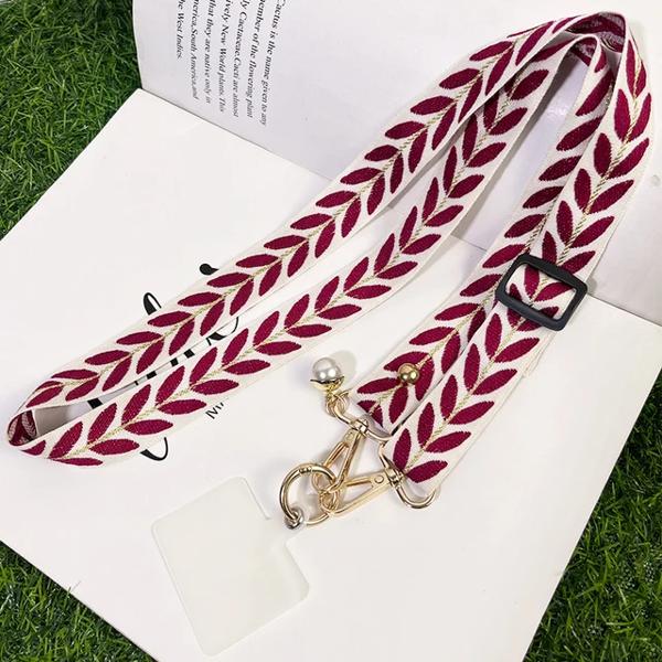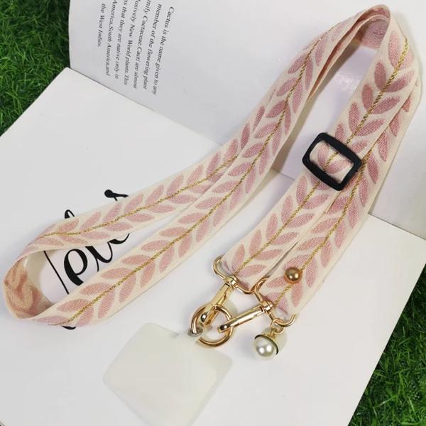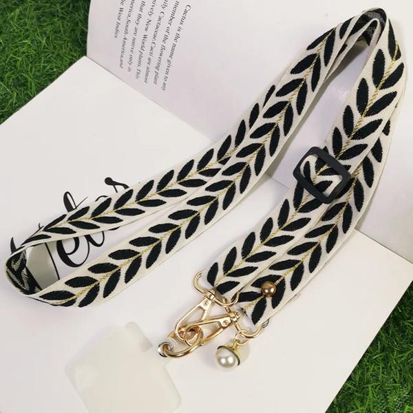 携帯電話用ロングクロスボディストラップ 紛失防止ストラップ バインリーフ パールペンダント 調節可能なネックストラップ 電話ケースの装飾