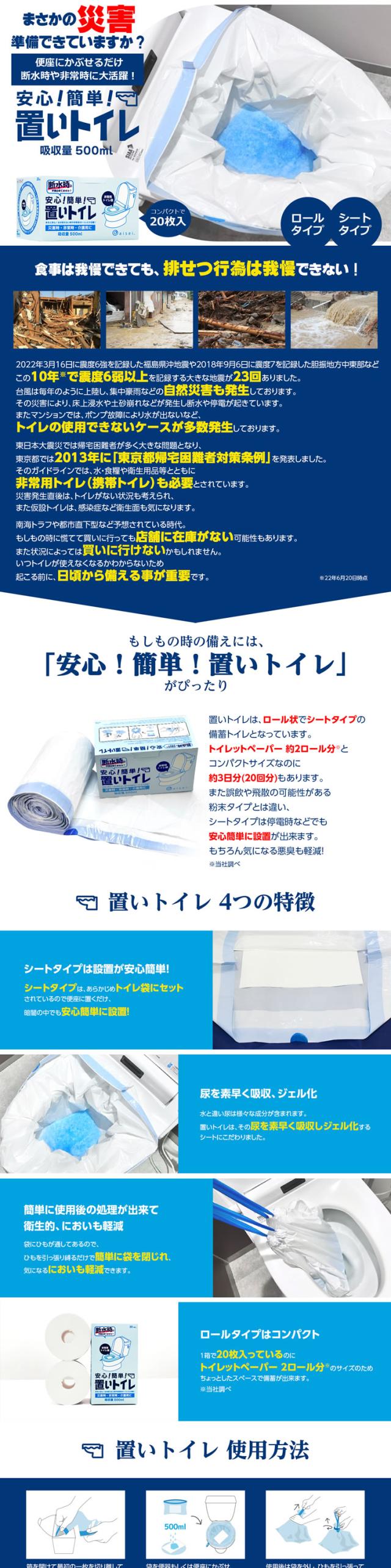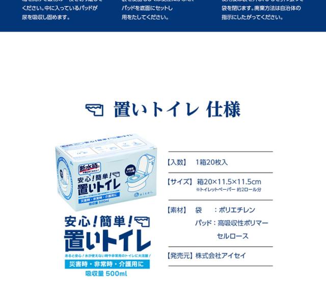 ★災害用トイレ★ 置いトイレ20枚入×3箱 ◆災害用トイレ 凝固剤 トイレセット 簡易トイレ 便座 携帯トイレ 使い捨て 凝固剤付 防災トイレ 緊急トイレ 防災グッズ 非常用◆