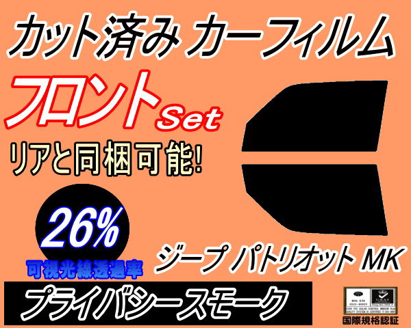 フロント (s) ジープ パトリオット MK (26%) カット済みカーフィルム 運転席 助手席 三角窓 左右セット スモークフィルム フロントドア 車種別 スモーク 車種専用 成形 フイルム 日よけ 窓 ガラス ウインドウ 紫外線 UVカット Jeep MK74 ジープ用