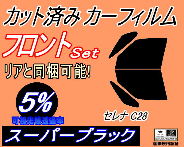 フロント (b) セレナワゴン C28 (5%) カット済みカーフィルム 運転席 助手席 三角窓 左右セット スモークフィルム フロントドア 車種別 スモーク 車種専用 成形 フイルム 日よけ 窓 ガラス ウインドウ 紫外線 UVカット C28 NC28 FNC28 FC28 GC28 GFC28 ニッサン用