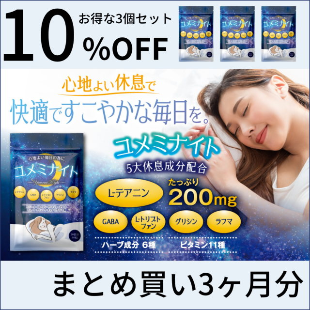 テアニン サプリメント GABA 睡眠 グリシン ユメミナイト バレリアン ハーブ ビタミン 3袋