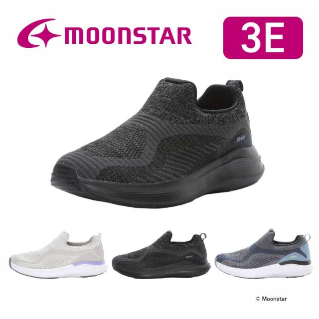 【SNGYcushion(シナジークッション)上位モデル】ムーンスターのレディーススニーカーです。軽さと柔らかさが魅力のクッション性に優れたシナジークッションシリーズの上位モデルです。ニットアッパーで足なじみが良く、通気性に優れています。着脱しやすいスリッポンタイプです。ヒールの高さは4.0cmで、重量は23.0cmで片足約230gです。【バルーンフォーム】極上のやわらかさと反発性のある特殊素材です。風船のようなふわっと弾力のある履き心地です。【ファジーニット・プラスクリア】通気性と柔軟性に優れたニットをクリア繊維でグレードアップさせたアッパー素材です。【マッシュタッチ・プラス】マシュマロのように柔らかな弾力にプラスして耐久性を強化したインソールです。【ワイド設計】幅広の方に対応した商品です。【ランディングカット】踵部を斜めにカット。安定した着地から自然な体重移動を生み出し、足腰の負担を軽減します。【Ag+抗菌防臭】銀イオンの抗菌作用でにおいのもととなる菌の増殖を抑制し、防臭効果を発揮します。天然由来成分で安全です。【サラリーナ】汗や水分を素早く吸収・拡散