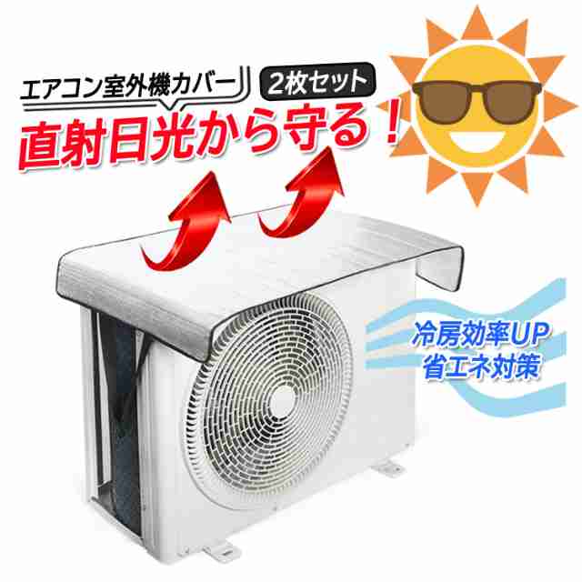 エアコン室外機カバー 2枚セット 遮熱シート 汎用 設置簡単 日除け 雨除け 雪除け 防水防塵 汚れ対策 省エネ 節電 断熱 冷房効率アップ OUC105S2