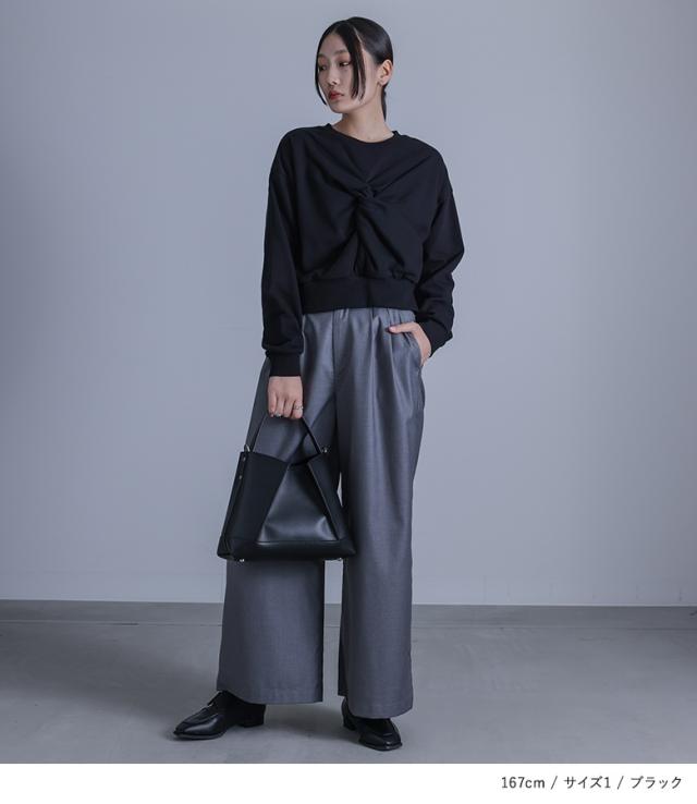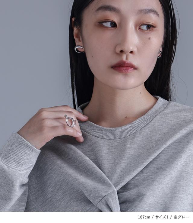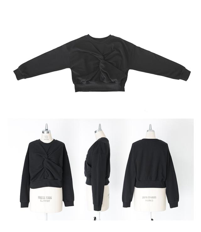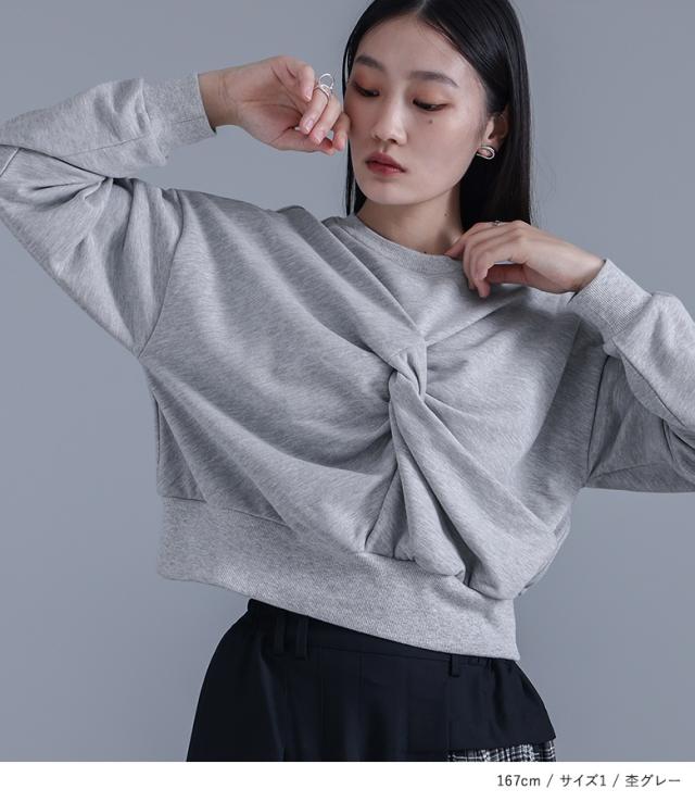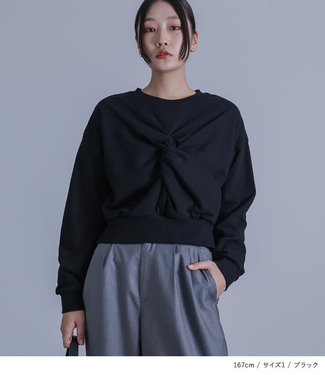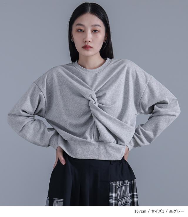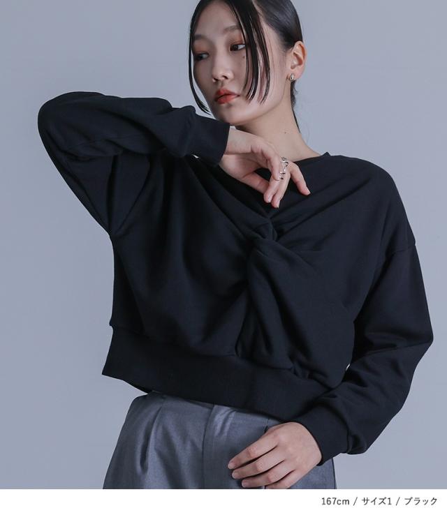 『ツイストデザインスウェット』【メール便不可】【20】[スウェット レディース トップス プルオーバー トレーナー ショート丈 クルーネック ハイデザイン モード クール オシャレウォーカー]