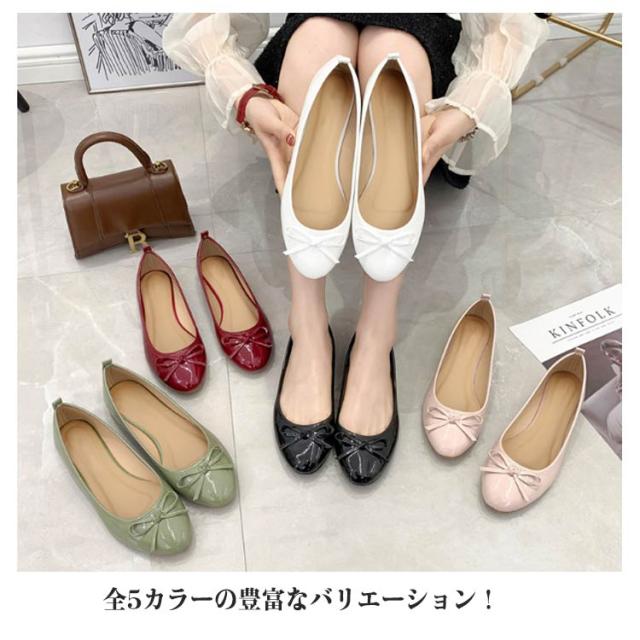 バレエシューズ 23~25.5cm フラットシューズ パンプス フラット ぺたんこ 大きいサイズ ブラック 黒 バレエコア ぺたんこ フラットシューズ レディース 柔らかい 歩きやすい クッション リボン