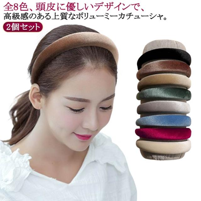 全8色 光沢感 カチューシャ ボリューム ベロアカチューシャ 幅広 ワイド 痛くないカチューシャ 2個セット 上品 まとめ髪 小顔 洗顔 かわいい エレガント 秋冬 ファッション 白髪隠し