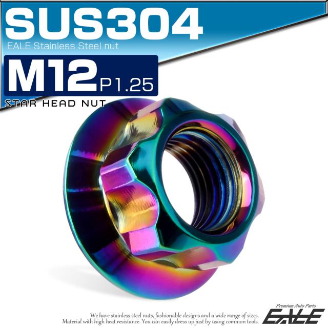 フランジナット スターヘッド M12 P1.25 セレート付き デザインナット SUSステンレス フランジ付き 六角ナット レインボー 虹色 TF0259