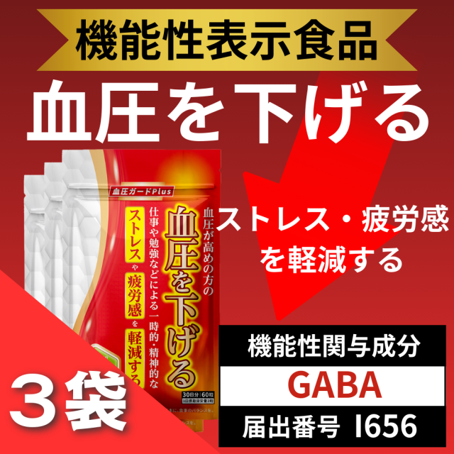血圧を下げる サプリメント GABA ギャバ 血圧ガードplus 機能性表示食品 ストレス 3袋