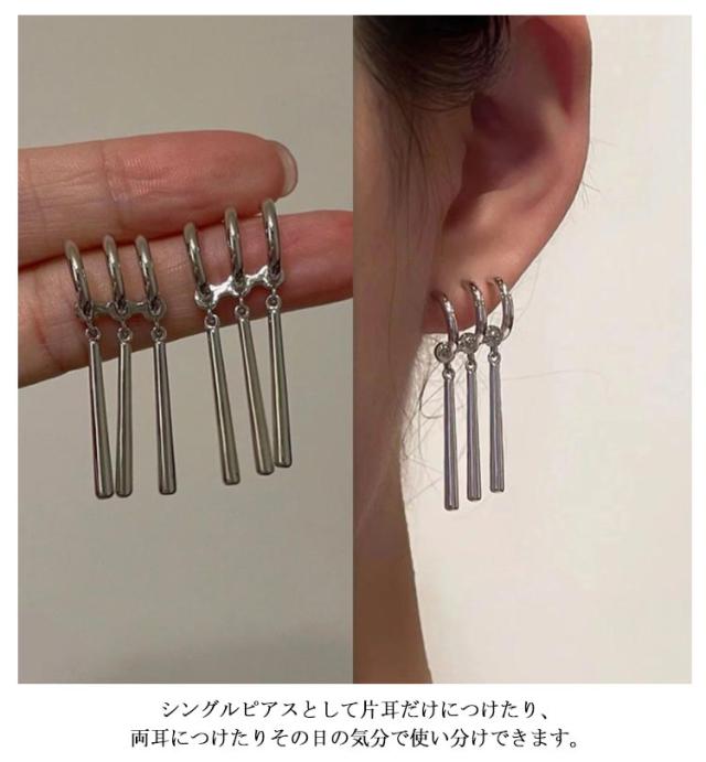 スティックピアス 3連 揺れる 片耳用 ハーフフープピアス リングピアス ゾロームピアス 両耳用 スティックピアス ピアス レディース ロングピアス ゾロピアス コスプレ シンプル ストリート 韓国風 カジュアル