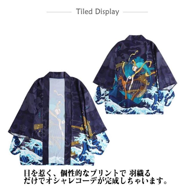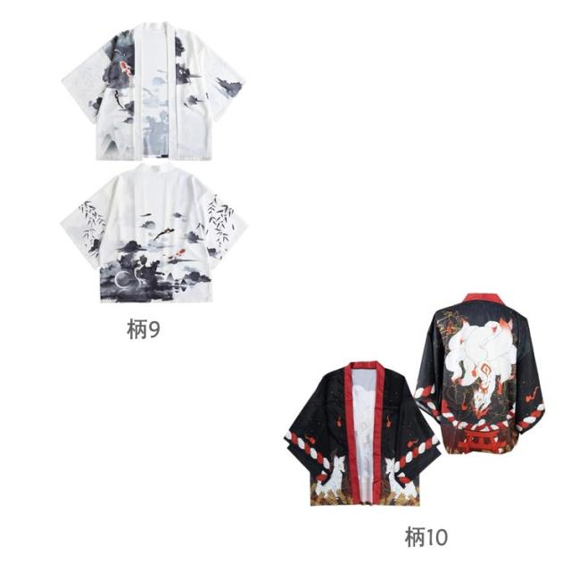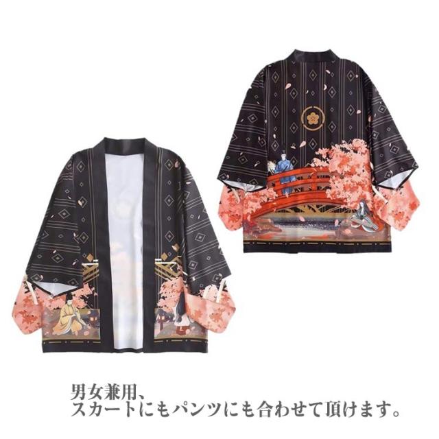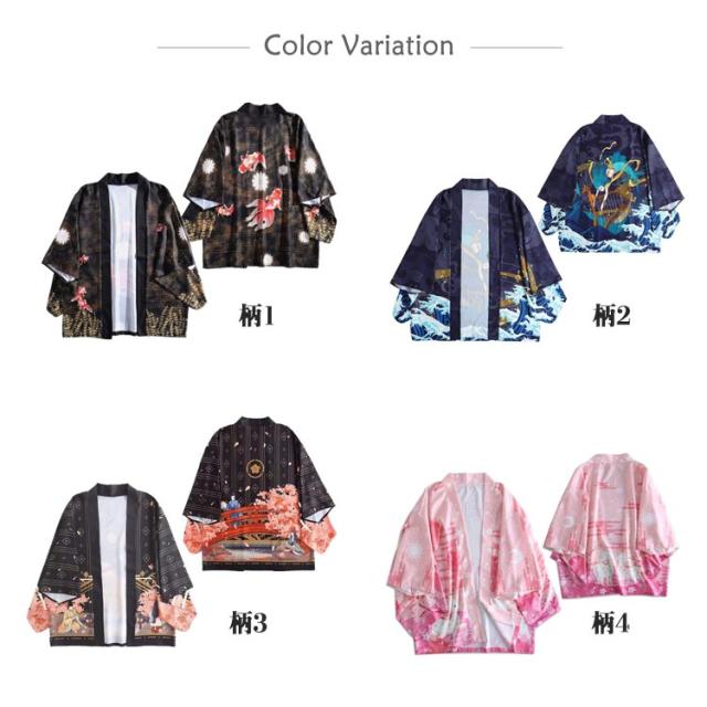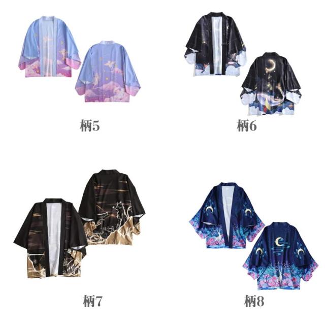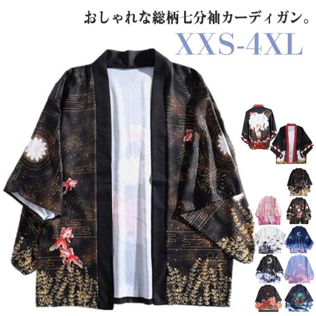 サマーカーディガン 七分袖 カーディガン 和風 サマーカーディガン レディース メンズ 浴衣 ゆったり 開襟シャツ パーカー プリント柄 日焼け止め 冷房対策 紫外線防止 夏祭り 花火大会